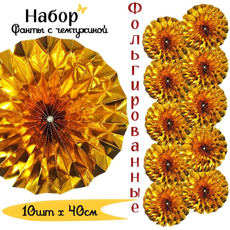 Фанты фольгированные с жемчужиной НАБОР 10шт х 40см, золото