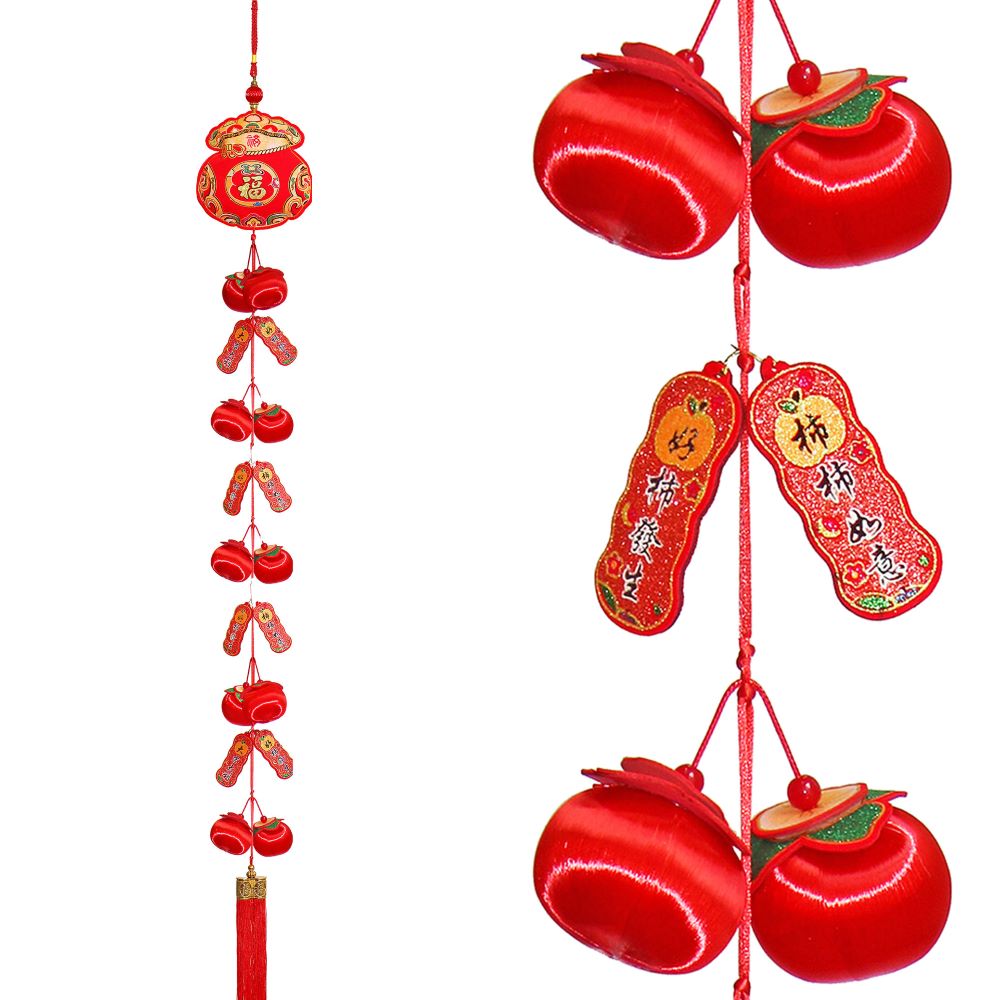 Символика подвески включает красные яблоки, которые олицетворяют мир, гармонию и процветание; иероглифы на листьях, символизирующие благополучие, и денежный мешок, который ассоциируется с финансовым успехом.