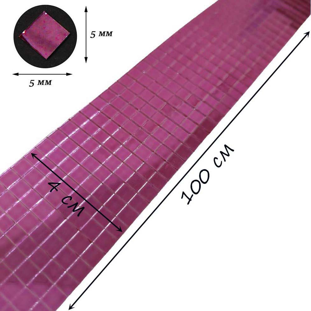 Лента самоклеящаяся зеркальная мозаика стекло, 4см х 1м 5х5мм, розовый