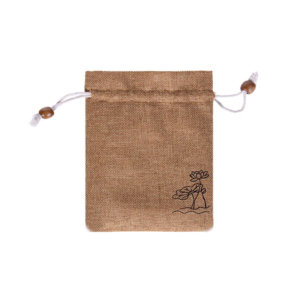Мешочек из искусственного льна с орнаментом 15х12 см, песочный