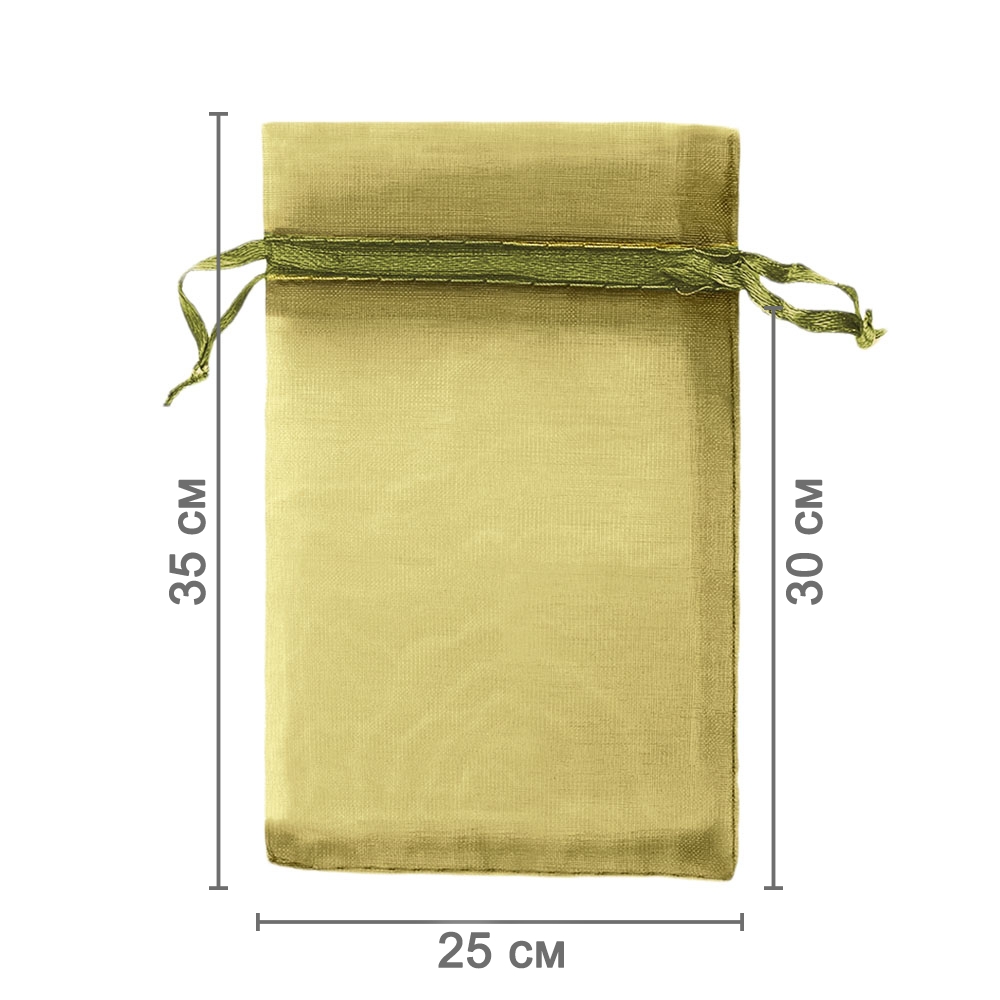 Мешочек из органзы 25 х 35 см — практичный аксессуар для упаковки крупных предметов и подарков. Лёгкая ткань подчёркивает содержимое и придаёт праздничный вид.