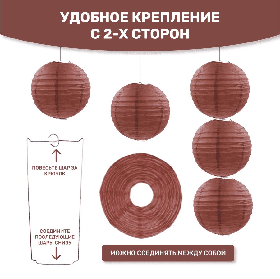 В комплект входит 8 бумажных фонариков и лента атласная.