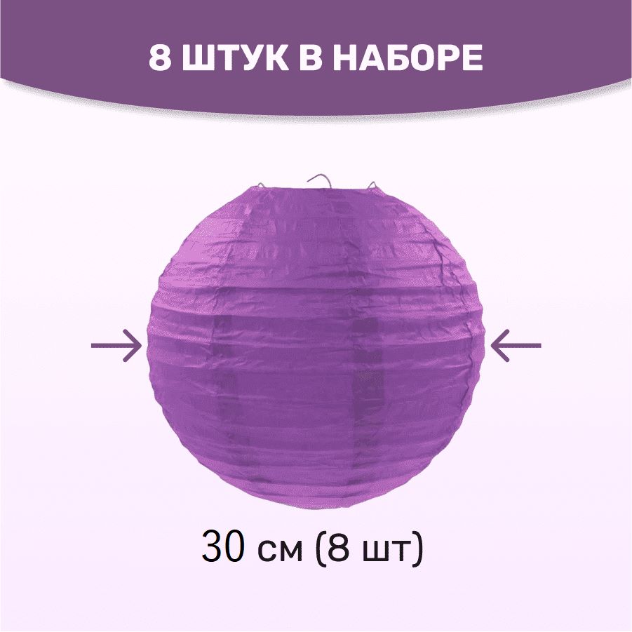 Комплект подвесные фонарики 30 см х 8 шт, сиреневый
