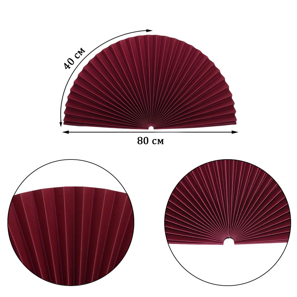 Веер-гармошка 180г/м 80 см, бордовый