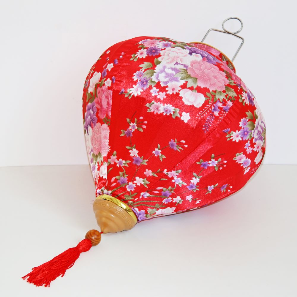 Это традиционные подвесные фонарики ручной работы, изготовленные из шелкового материала с элегантным цветочным узором, которые делают его изысканным и красивым.