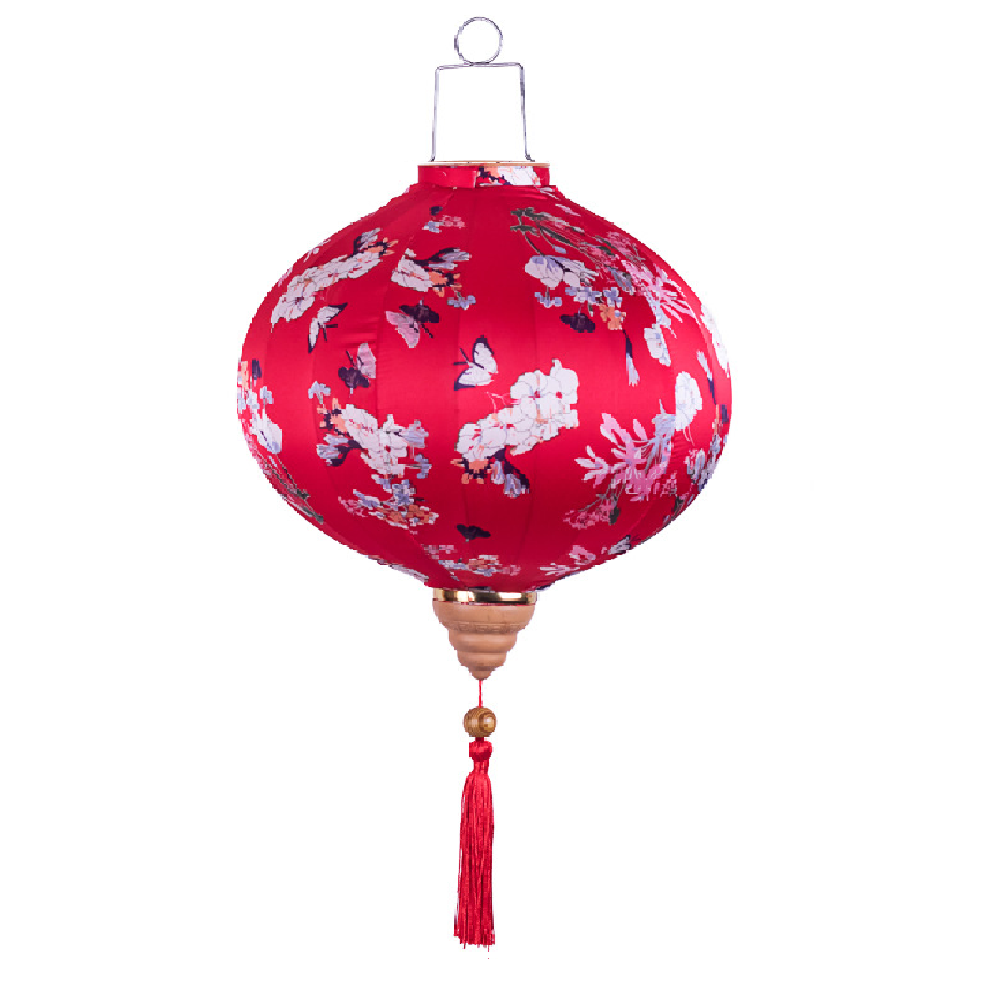 Коллекция подвесных фонарей ручной работы. Конструкция из шелкового полотна с цветочным орнаментом, металлического каркаса и подвесной системы. Модель в красной цветовой гамме.