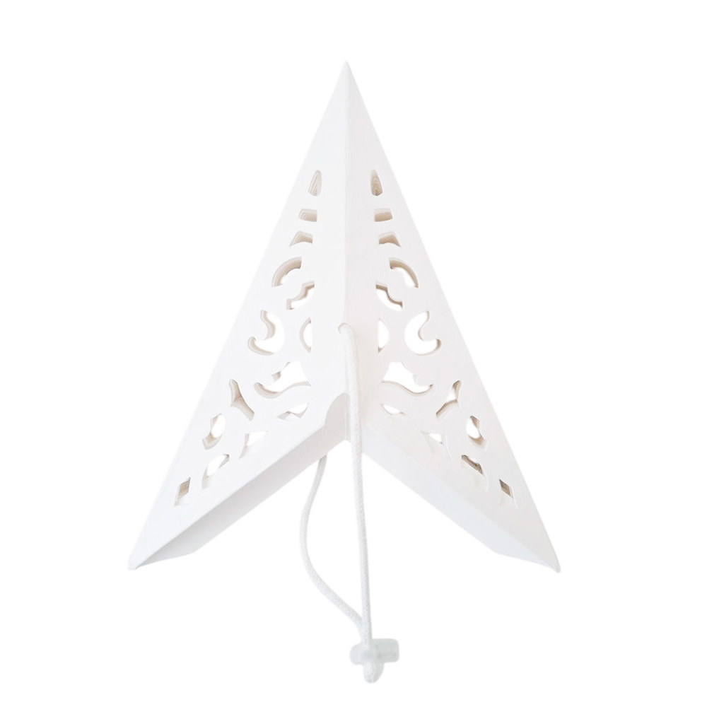 Аккуратно расправьте лучи, чтобы придать звезде идеальную объемную форму, затем зафиксируйте встроенным шнуром для подвеса.